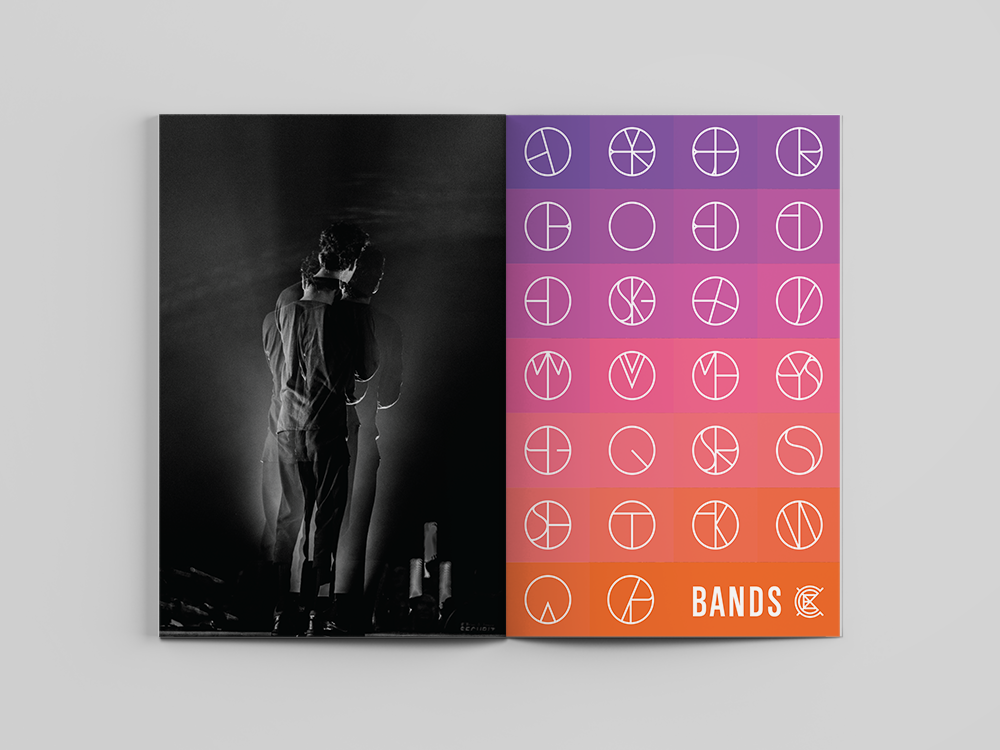 The third zine was released at the festival — to encapsulate summer — and acted as a guide through the festival for attendees. A list of the bands, beautifully color-coded, gave basic information in a clean layout.