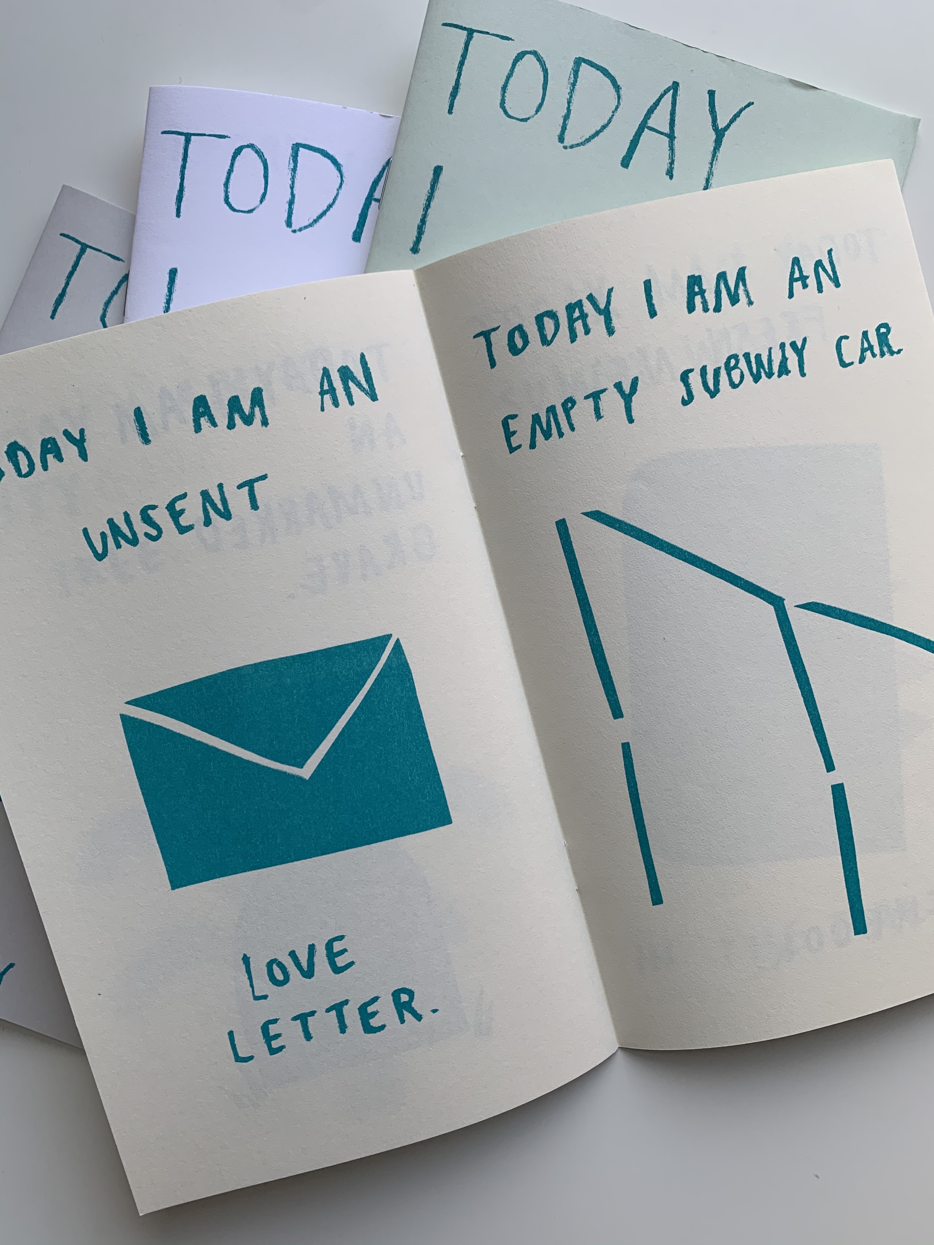 ——— Riso printed with vegetable-based ink on assorted color overstock paper. 5.5” x 8.5”, 24 pages.